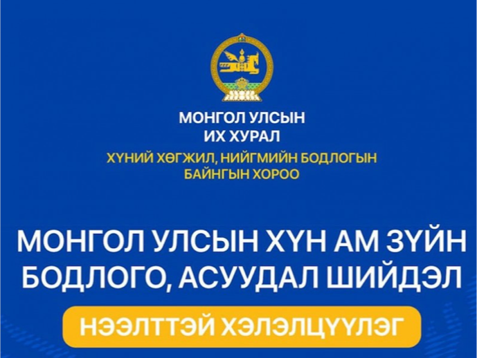 Тус төслийг Байнгын хороо болон чуулганы нэгдсэн хуралдаанаар хэлэлцүүлэгт бэлтгэх, санал, дүгнэлт боловсруулах үүрэг бүхий ажлын хэсгээс “МОНГОЛ УЛСЫН ХҮН АМ ЗҮЙН БОДЛОГО, АСУУДАЛ ШИЙДЭЛ” сэдэвт нээлттэй хэлэлцүүлгийг 2026 оны 04 дүгээр сарын 24-ний өдрийн Баасан гарагийн 14.00 цагт Төрийн ордны “Жанжин Д.Сүхбаатар” танхимд зохион байгуулна.
