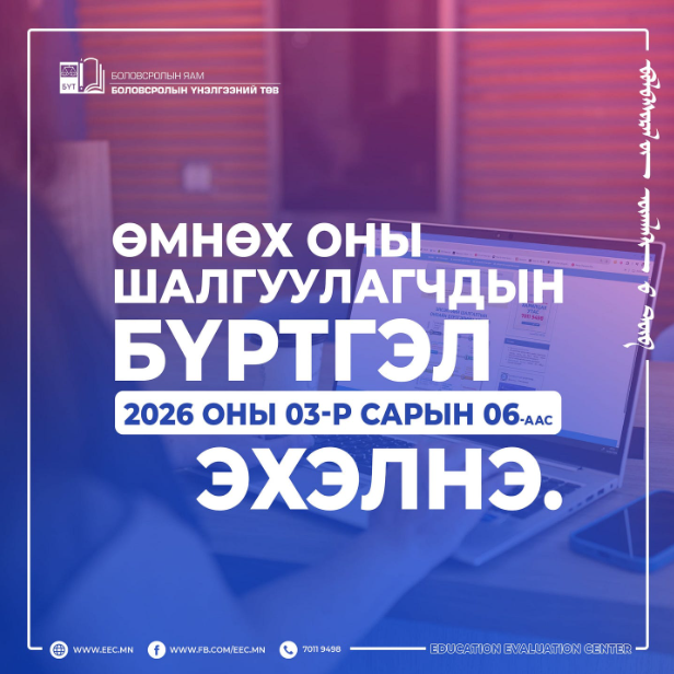 Бүртгэл 2026 оны гуравдугаар сарын 4-ний 09:00 цагт эхэлж, тавдугаар сарын 15-ны 18:00 цагт дуусна гэж Боловсролын яамнаас мэдээллээ.