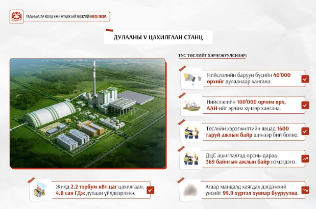 Улаанбаатар хотын өсөн нэмэгдэж буй эрчим хүчний хэрэглээг тэнцвэржүүлэх зорилгоор нийслэлээс Дулааны тавдугаар цахилгаан станцыг барихаар төлөвлөсөн. Өнөөдрийн байдлаар төслийн талбайн геодезийн 142 цооног өрөмдлөгийн ажлыг дууссан. Ирэх дөрөвдүгээр сард станцын барилга угсралтын суурийн ажлыг эхлүүлэх юм.
